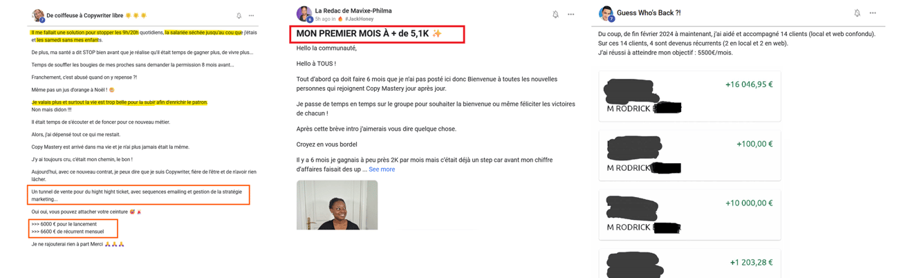 ✅ Il utilise des leviers émotionnels puissants en promettant autonomie, revenu et confiance en soi, tout en anticipant les objections financières avec des solutions de paiement variées.