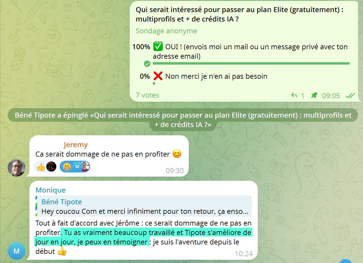🏆 Intégrer un lien direct de partage social au « PS » faciliterait la recommandation au lieu d’un simple transfert manuel.