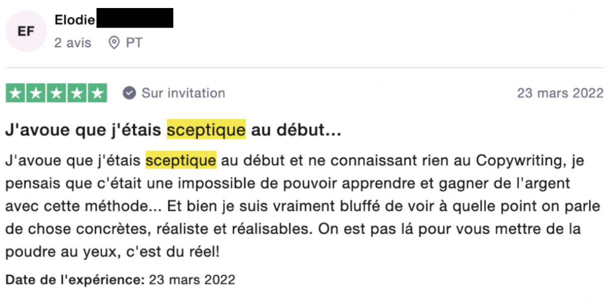✅ Il utilise la preuve sociale concrète (Samy, +1300 personnes) et l’empathie pour rassurer et projeter le lecteur.