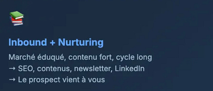 Votre situation : votre marché est éduqué, votre contenu est fort, et vous pouvez vous permettre un cycle de vente plus long. Ici, c’est le prospect qui vient à vous.