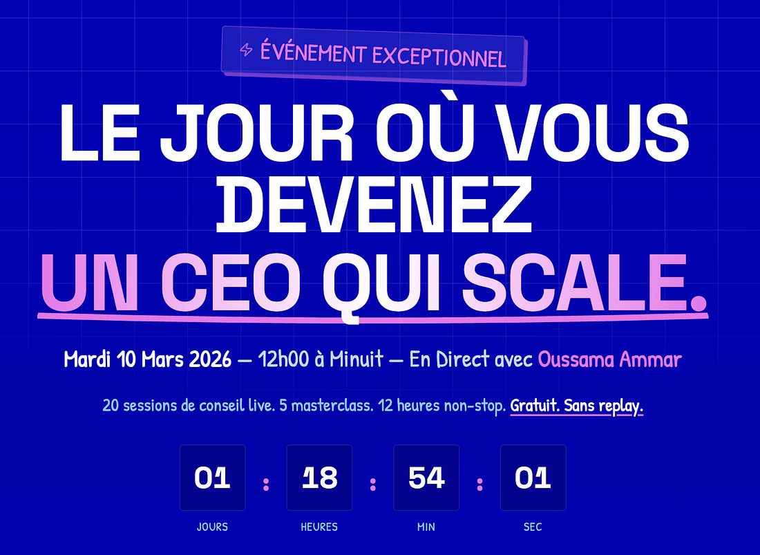 🏆 Éviter de noyer le CTA principal (👉 scalewithouss.com/webinaire) sous les CTA de conversion payante (améliorez votre abonnement et Passez à l’abonnement payant) permettrait de maximiser la conversion sur l’objectif immédiat de l’événement.
